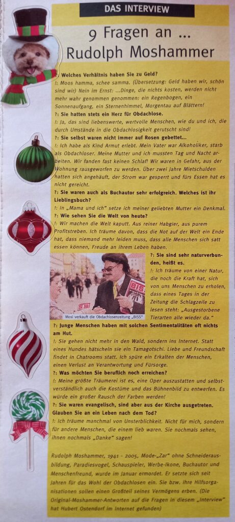 Wir wünschen Euch einen schönen ersten Weihnachtstag! Mosi-Fans waren wir schon immer. Das folgende Interview haben wir in einer alten fifty fifty gefunden: